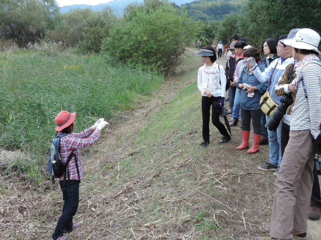 学習会は、前半に静岡県立北特別支援学校の体育館で畠講師がパワーポイントやDVDを使用し、カヤネズミの生態や観察する際のフィールドマナー等について説明し、後半は遊水地に移動しカヤネズミの巣や生息環境などを観察しました。