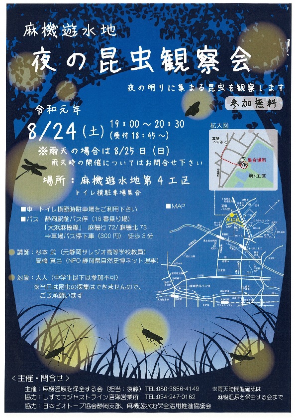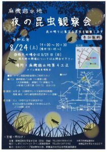 麻機遊水地保全活用推進協議会 > お知らせ一覧 > 「夜の昆虫観察会」を開催します!